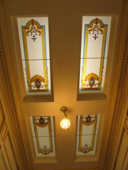 Skylights enhanced by the addition of stained glass transcend their original function, becoming celestial marvels that effortlessly blend the celestial with the terrestrial. The intricate patterns and vibrant hues of stained glass capture and refract sunlight in a mesmerizing dance, casting a kaleidoscope of colors that cascade throughout the space below. These transformed skylights don’t just flood interiors with natural light; they infuse them with an undeniable sense of wonder and boundless inspiration. Whether one gazes upward to behold the serene scene above or basks in the warm, refracted glow of sunlight, occupants find themselves transported to a realm where the commonplace fades away, leaving only the sublime beauty of stained glass to illuminate their surroundings. Indeed, stained glass skylights stand as a resplendent testament to the harmonious union of form and function, beckoning us to look skyward and dare to dream amidst their ethereal radiance.