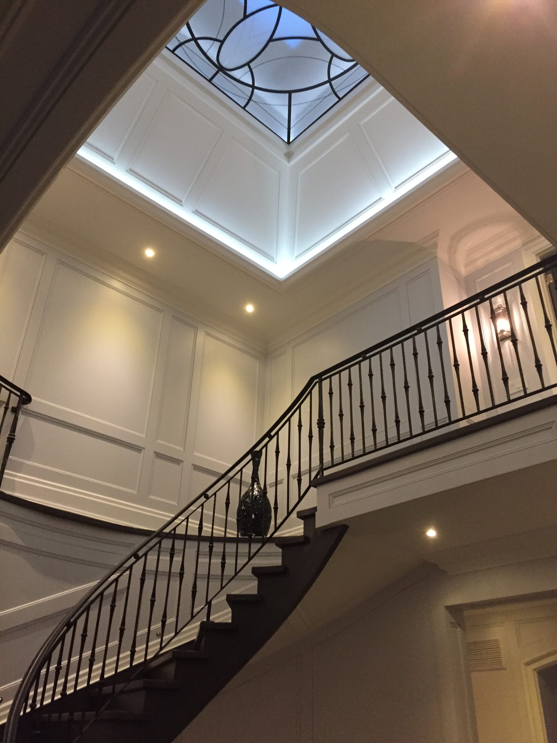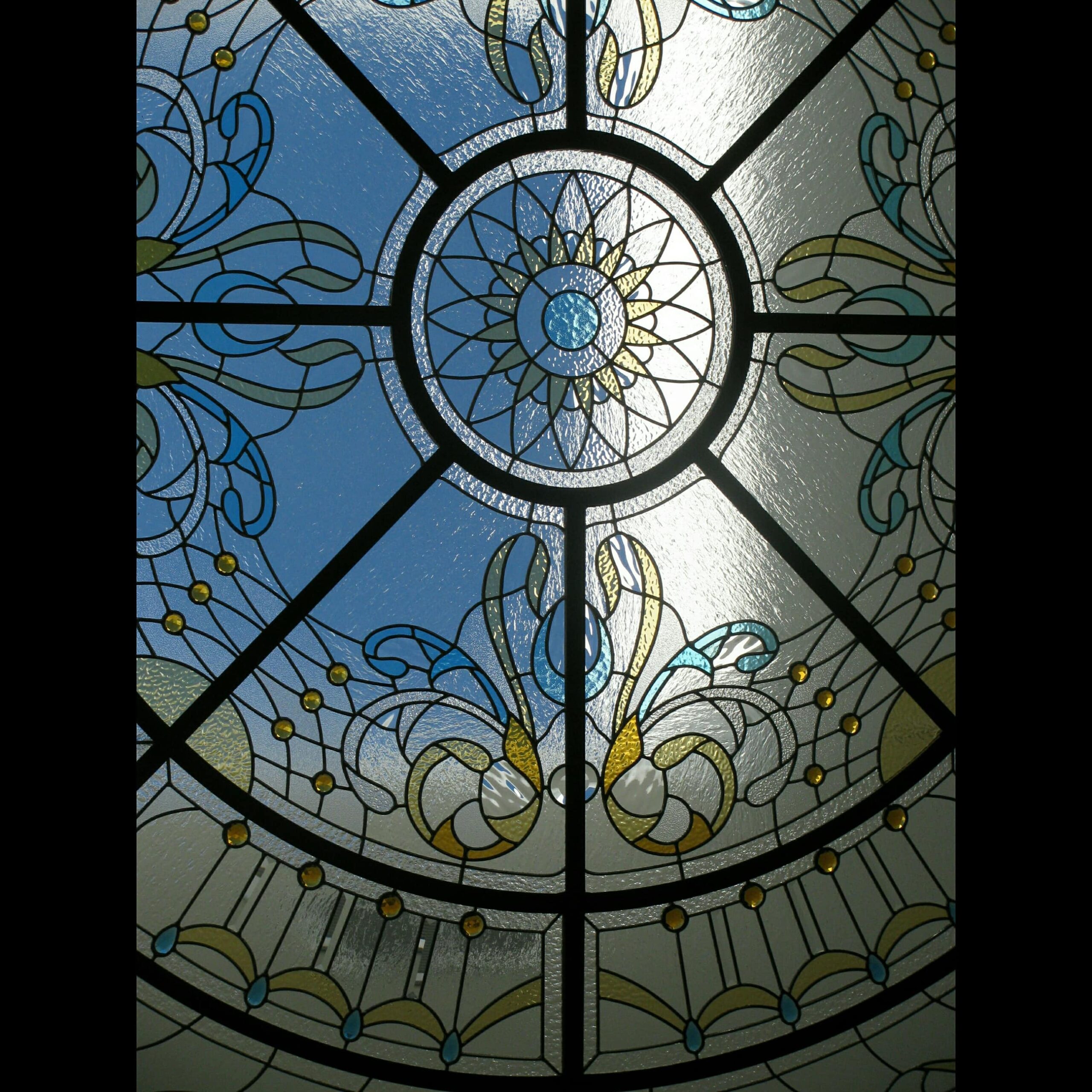 Skylights enhanced by the addition of stained glass transcend their original function, becoming celestial marvels that effortlessly blend the celestial with the terrestrial. The intricate patterns and vibrant hues of stained glass capture and refract sunlight in a mesmerizing dance, casting a kaleidoscope of colors that cascade throughout the space below. These transformed skylights don’t just flood interiors with natural light; they infuse them with an undeniable sense of wonder and boundless inspiration. Whether one gazes upward to behold the serene scene above or basks in the warm, refracted glow of sunlight, occupants find themselves transported to a realm where the commonplace fades away, leaving only the sublime beauty of stained glass to illuminate their surroundings. Indeed, stained glass skylights stand as a resplendent testament to the harmonious union of form and function, beckoning us to look skyward and dare to dream amidst their ethereal radiance.